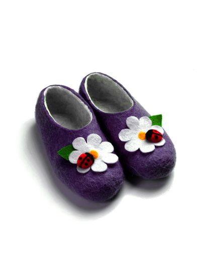 Войлочные тапочки «Божья коровка на ромашке» фиолетовые