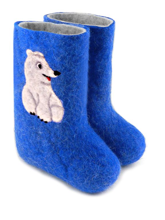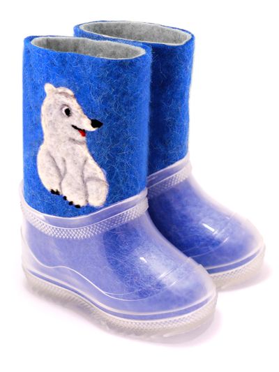 В зимнее время года ноги ребенка непременно нужно защитить от холода. С этой задачей прекрасно справятся детские валенки от торговой марки Woole. Валенки для ребенка в своем составе имеют 100% шерсть, они очень мягкие, отлично впитывают влагу, при этом сами валенки быстро ее испаряют, что не дает ногам замерзать. Валенки «Белый мишка» из натурального войлока ручной валки продаются вместе с калошами отлично защищены от попадания грязи. Калоши съёмные не скользкие.
