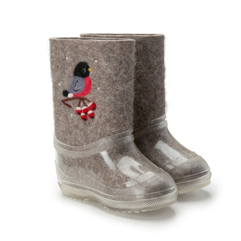 В зимнее время года ноги ребенка непременно нужно защитить от холода. С этой задачей прекрасно справятся детские валенки от торговой марки Woole. Валенки для ребенка в своем составе имеют 100% шерсть, они очень мягкие, отлично впитывают влагу, при этом сами валенки быстро ее испаряют, что не дает ногам замерзать. Валенки «Снегири» из натурального войлока ручной валки продаются вместе с калошами отлично защищены от попадания грязи. Калоши съёмные не скользкие.