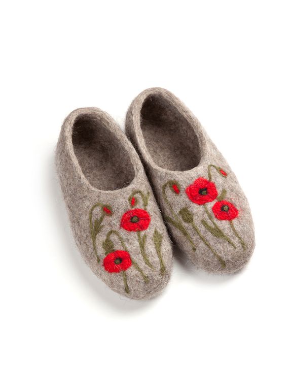 Размер тапочек соответствует размеру обуви, которую вы носите на улице. Войлочные тапочки покупают размер в размер.
