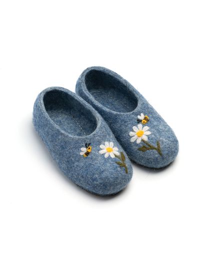 Детские войлочные тапочки ромашки на голубом (Пчёлки) 14