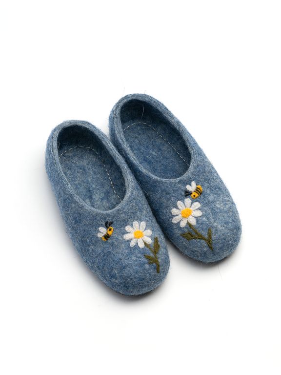 Детские войлочные тапочки ромашки на голубом (Пчёлки) 20