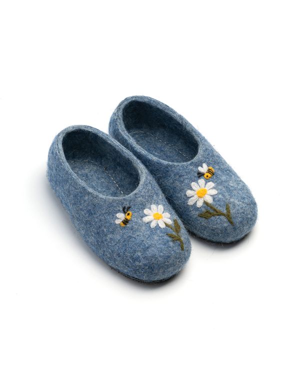 Детские войлочные тапочки ромашки на голубом (Пчёлки) 21