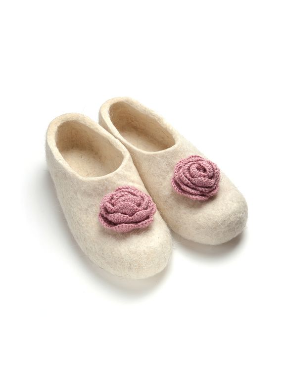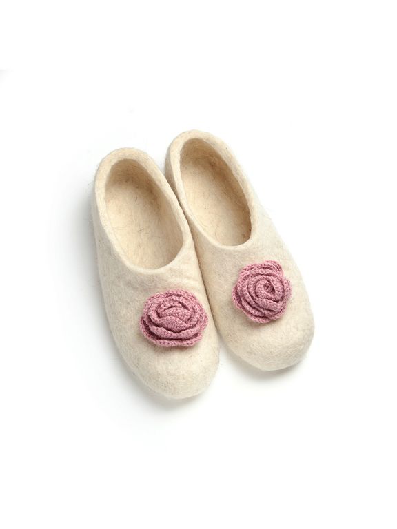 Войлочные тапочки «Роза» белые
