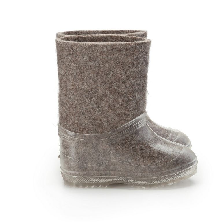 В зимнее время года ноги ребенка непременно нужно защитить от холода. С этой задачей прекрасно справятся детские валенки от торговой марки Woole. Валенки для ребенка в своем составе имеют 100% шерсть, они очень мягкие, отлично впитывают влагу, при этом сами валенки быстро ее испаряют, что не дает ногам замерзать. Серые валенки из натурального войлока ручной валки продаются вместе с калошами отлично защищены от попадания грязи. Калоши съёмные не скользкие.