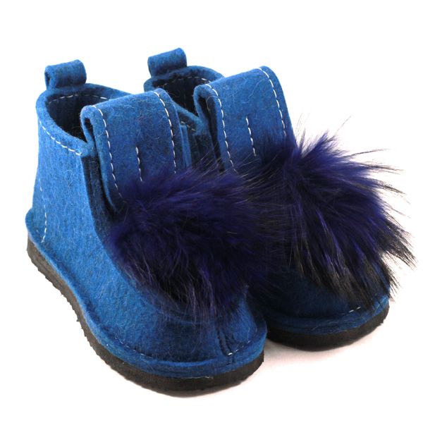 Шитые валенки синие с помпоном