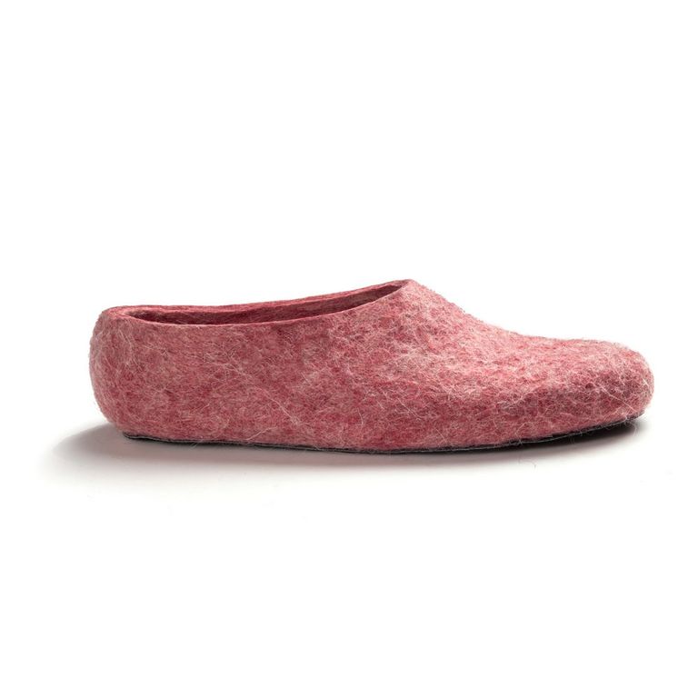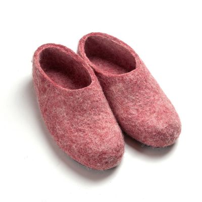 Комфортные валяные тапочки из красной и белой шерсти серии COMPOUND от бренда WOOLE.