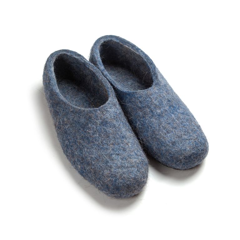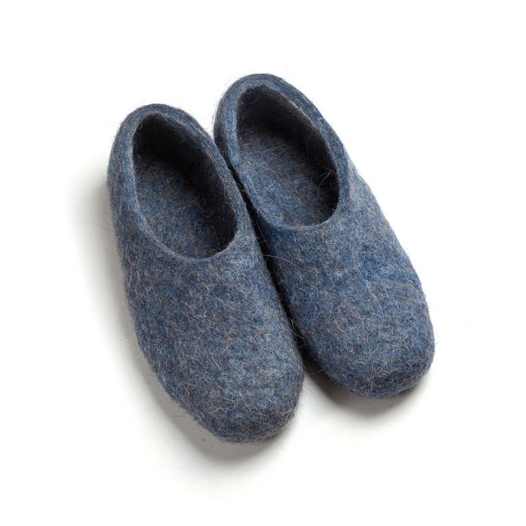 Комфортные тапочки из синей и серой шерсти серии COMPOUND от бренда WOOLE.