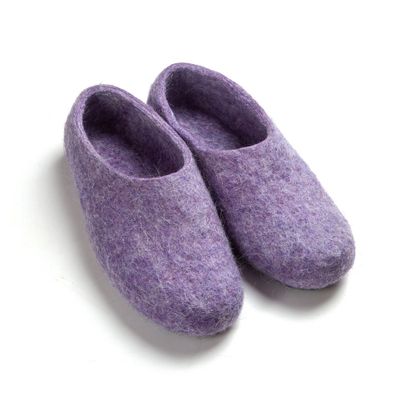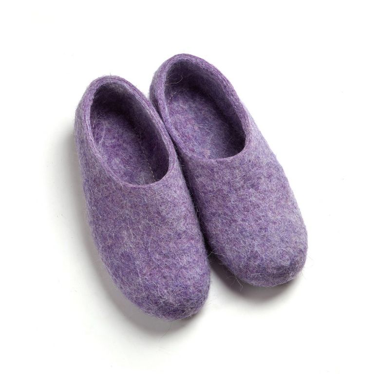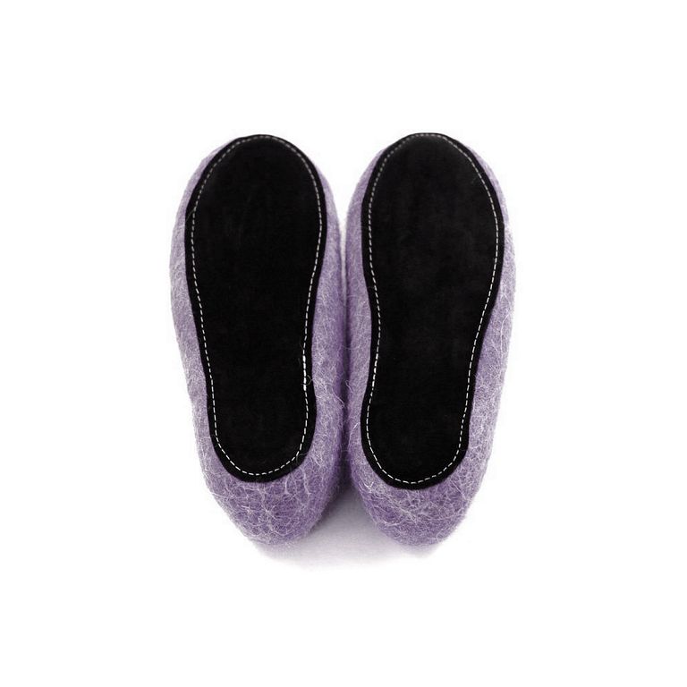 Комфортные валяные тапочки из сиреневый и белой шерсти серии COMPOUND от бренда WOOLE.