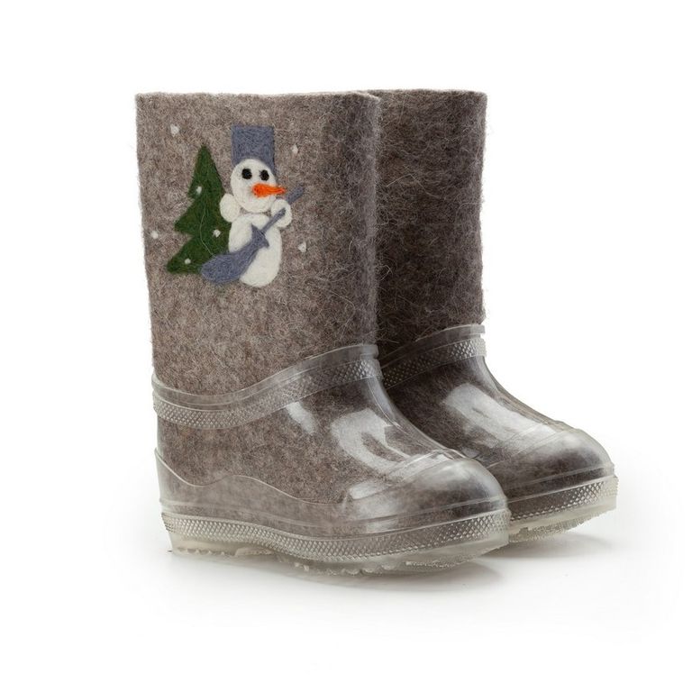 В зимнее время года ноги ребенка непременно нужно защитить от холода. С этой задачей прекрасно справятся детские валенки от торговой марки Woole. Валенки для ребенка в своем составе имеют 100% шерсть, они очень мягкие, отлично впитывают влагу, при этом сами валенки быстро ее испаряют, что не дает ногам замерзать. Валенки «Снеговик» из натурального войлока ручной валки продаются вместе с калошами отлично защищены от попадания грязи. Калоши съёмные не скользкие.