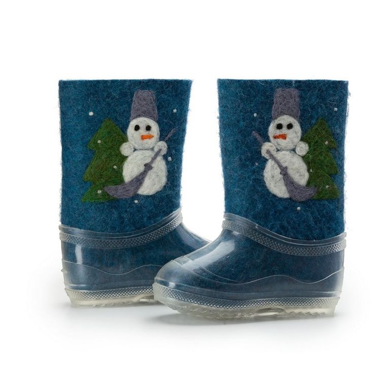 В зимнее время года ноги ребенка непременно нужно защитить от холода. С этой задачей прекрасно справятся детские валенки от торговой марки Woole. Валенки для ребенка в своем составе имеют 100% шерсть, они очень мягкие, отлично впитывают влагу, при этом сами валенки быстро ее испаряют, что не дает ногам замерзать. Валенки «Снеговики» из натурального войлока ручной валки продаются вместе с калошами отлично защищены от попадания грязи. Калоши съёмные не скользкие.