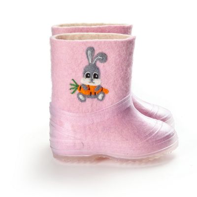 В зимнее время года ноги ребенка непременно нужно защитить от холода. С этой задачей прекрасно справятся детские валенки от торговой марки Woole. Валенки для ребенка в своем составе имеют 100% шерсть, они очень мягкие, отлично впитывают влагу, при этом сами валенки быстро ее испаряют, что не дает ногам замерзать. Валенки «Зайчики» из натурального войлока ручной валки продаются вместе с калошами отлично защищены от попадания грязи. Калоши съёмные не скользкие.