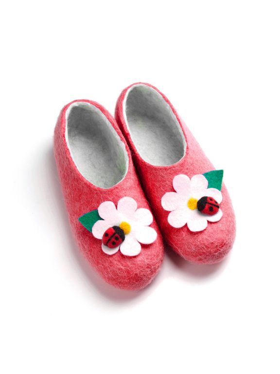 Размер тапочек соответствует размеру обуви, которую вы носите на улице. Войлочные тапочки покупают размер в размер или на один размер больше, чтобы тапки свободнее сидели и легче надевались.
