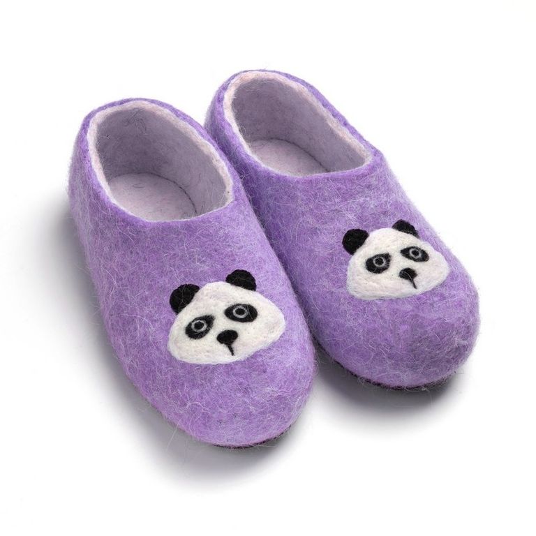Детские войлочные тапочки «Панда» сиреневые 16 (последний размер)