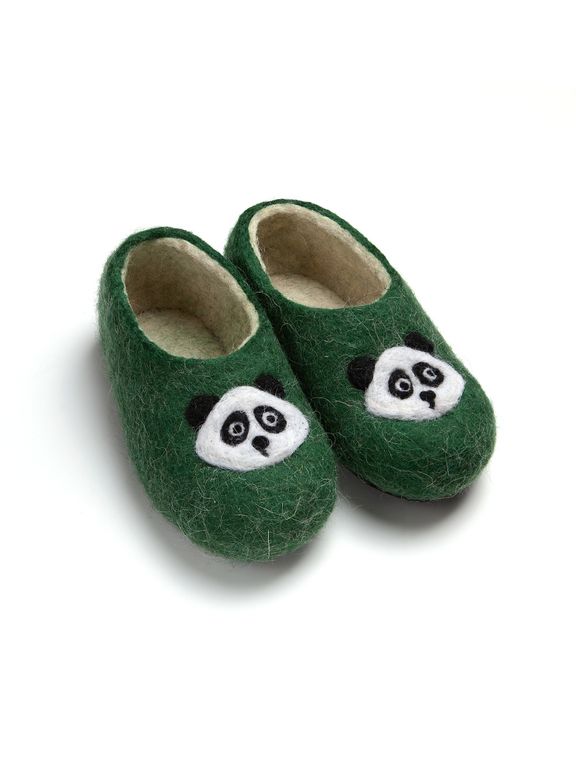 Детские войлочные тапочки «Панда» зеленые 16