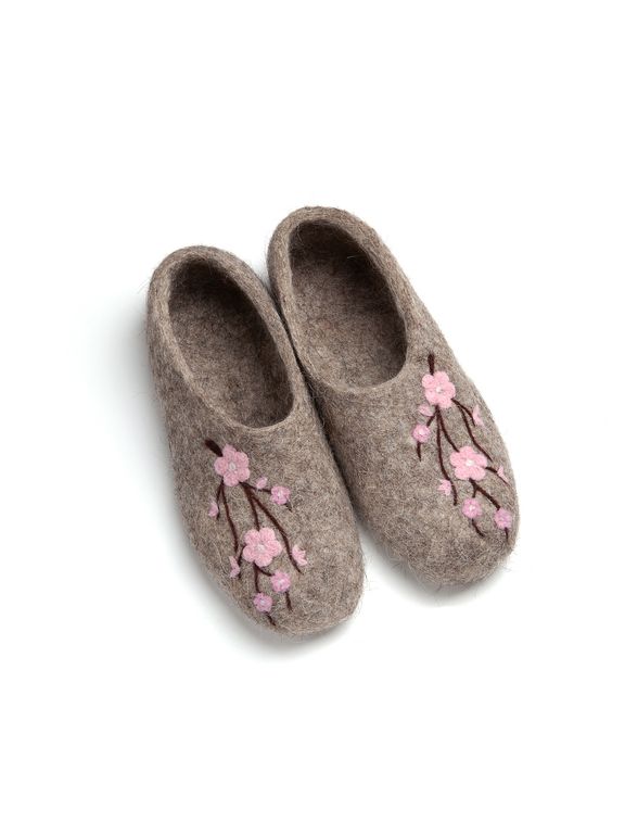 Войлочные тапочки «Цветение сакуры» серые