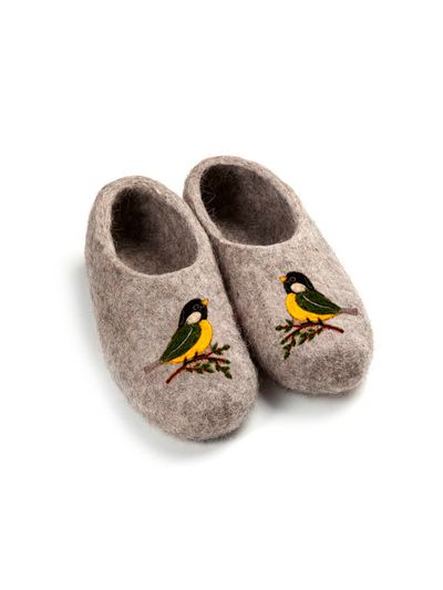 Войлочные тапочки «Синички» серые
