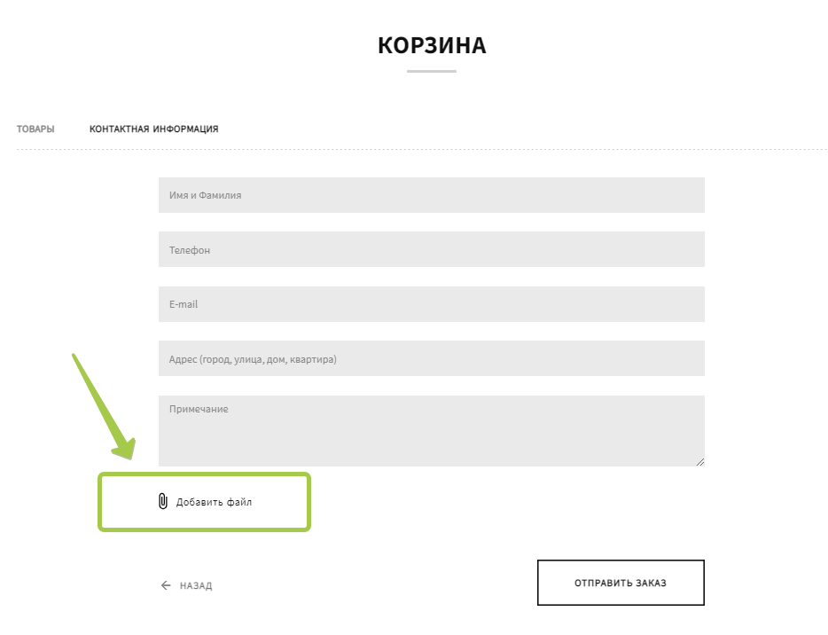 2. При заказе, добавьте файл скириношота в поле «Добавить файл»